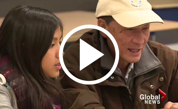 In Toronto, youth teach a variety of skills to help new Canadians integrate into their new surroundings, including English, basic financial literacy, environmental awareness, and more. They also work with isolated seniors, assisting them in learning new skills, such as playing musical instruments or using a smartphone.
