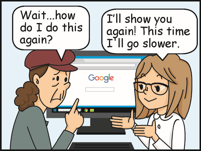 Have you ever watched a child patiently explain how to use a smartphone to their grandparent, or a child translate for their parent at a bank or doctor's office? That's the spark that ignited our program. We take what naturally happens in many households and bring it into a community setting, where we train and coach young people to confidently and effectively teach their parents, as well as other adults and seniors in their neighborhood.